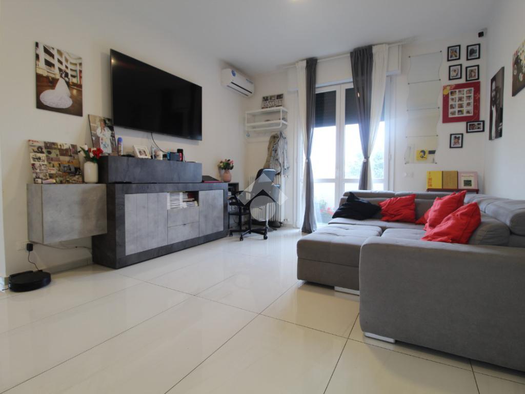 L'immobile è composto da ingresso su soggiorno con balcone, cucina abitabile con un secondo balconcino, due camere da letto matrimoniali ed un bagno con doccia.