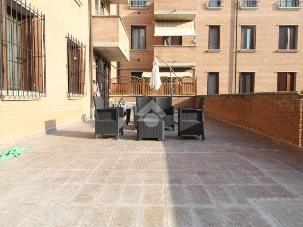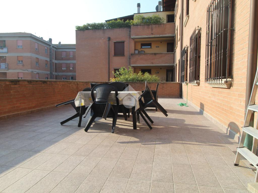 La zona giorno dell'immobile è composta da ingresso su ampio soggiorno con angolo cucina ed un terrazzo di ben 65 mq.