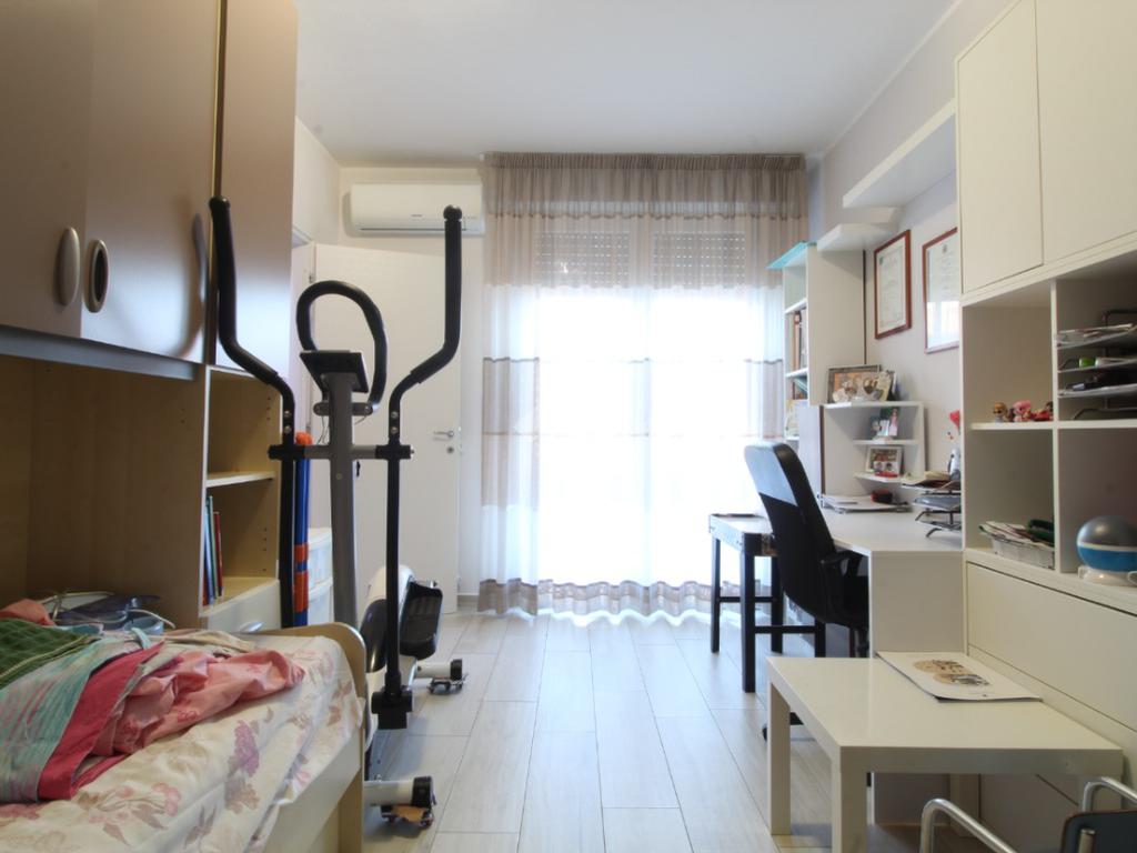 La zona notte è composta da disimpegno, due camere matrimoniali (di cui una con balcone), una camera singola anch’essa con balcone, un comodo ripostiglio e doppi servizi, uno con doccia e uno con vasca, perfetti per le esigenze di tutta la famiglia.