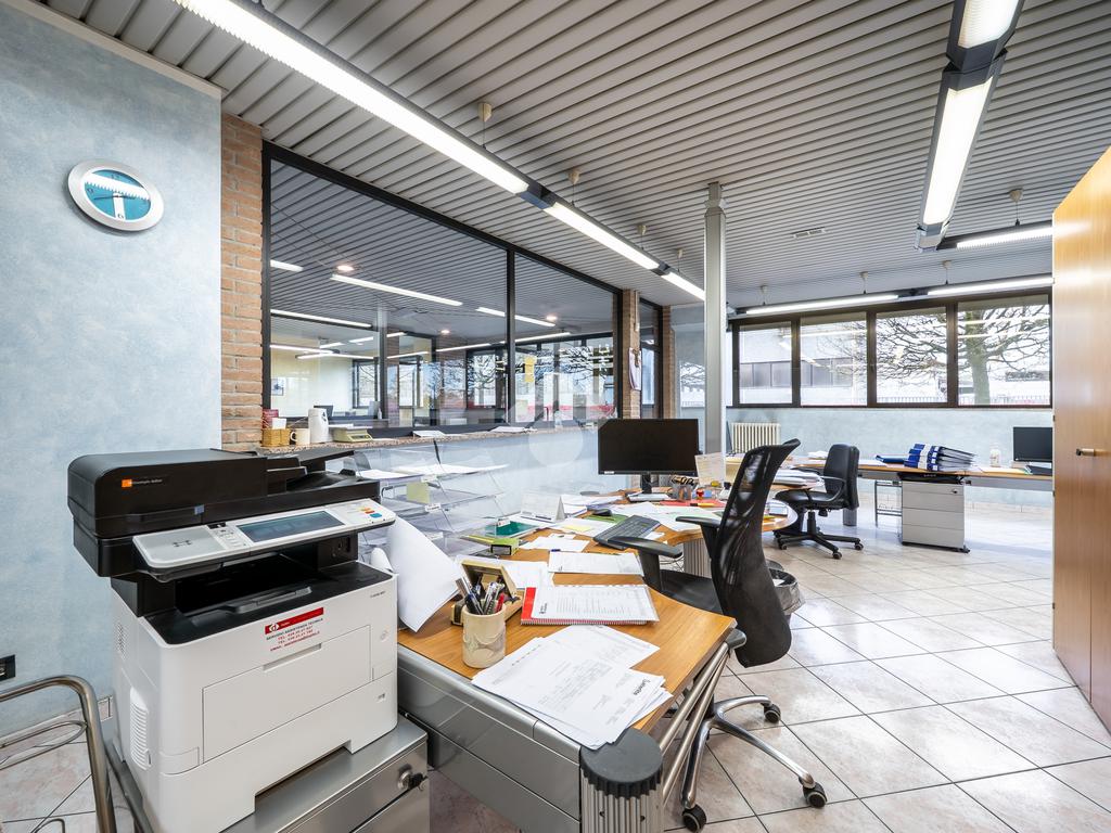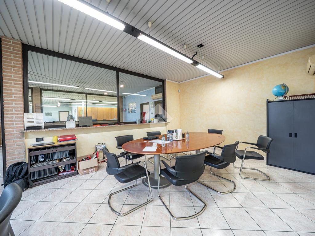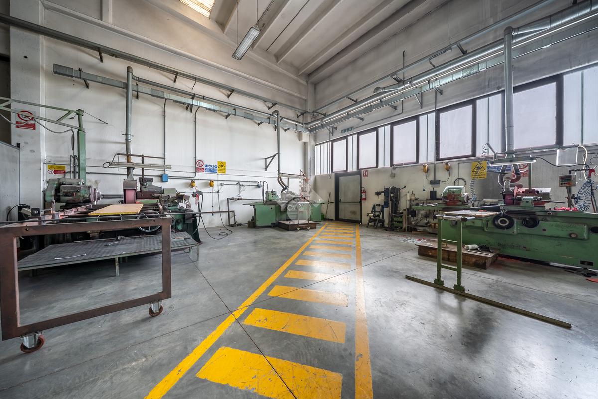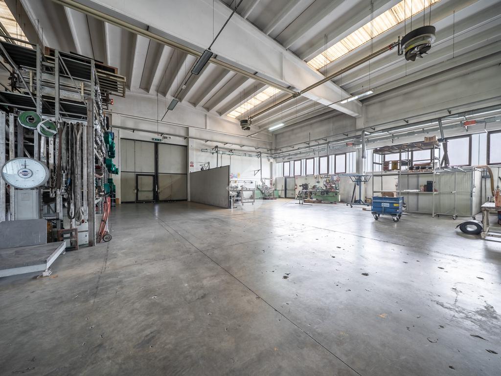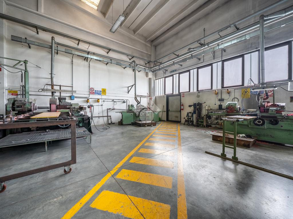 Piano terra: ingresso su atrio, due uffici, tre bagni, spogliatoio, sala ristoro, ampio capannone per lavorazioni e locale dedicato a lavorazioni meccaniche.