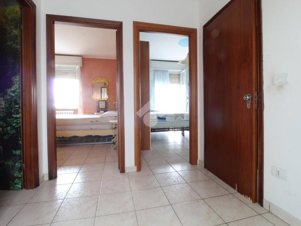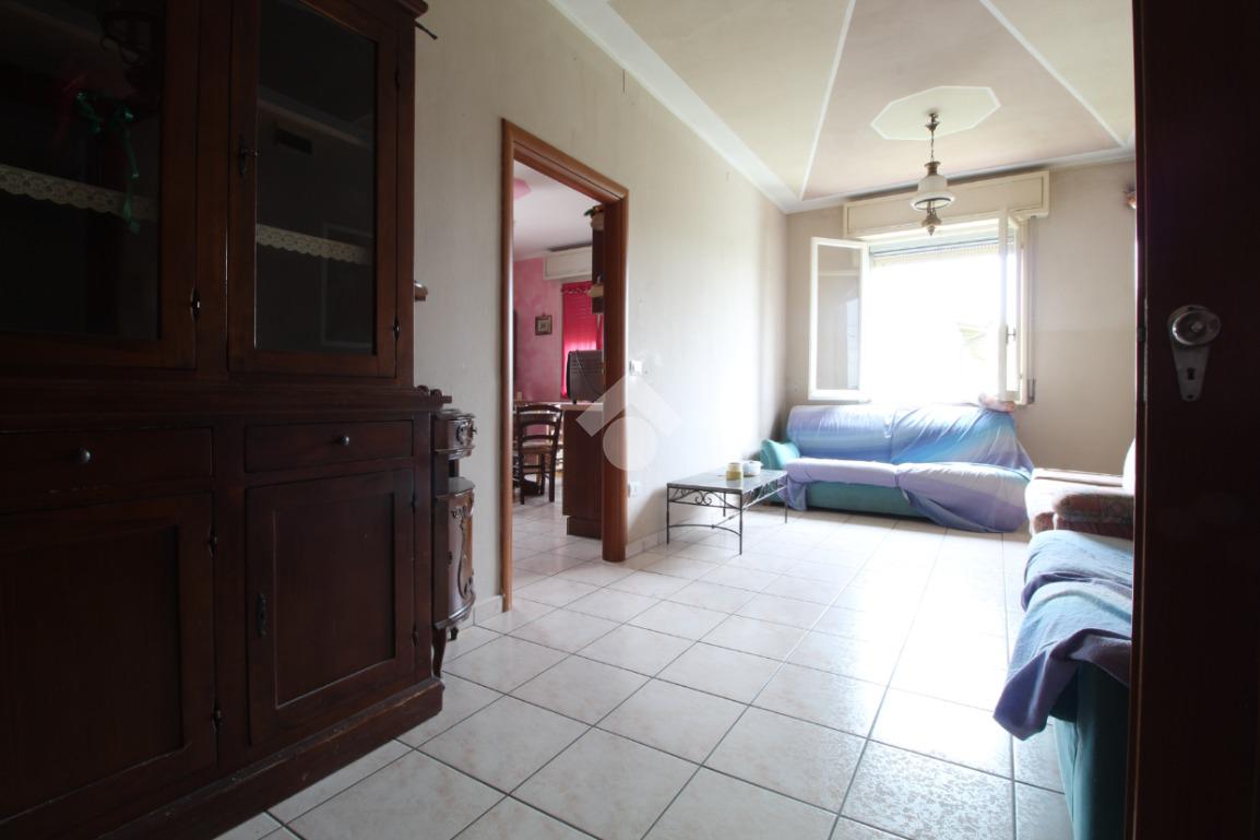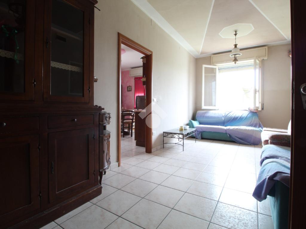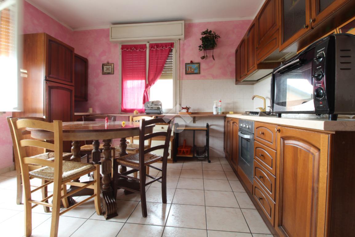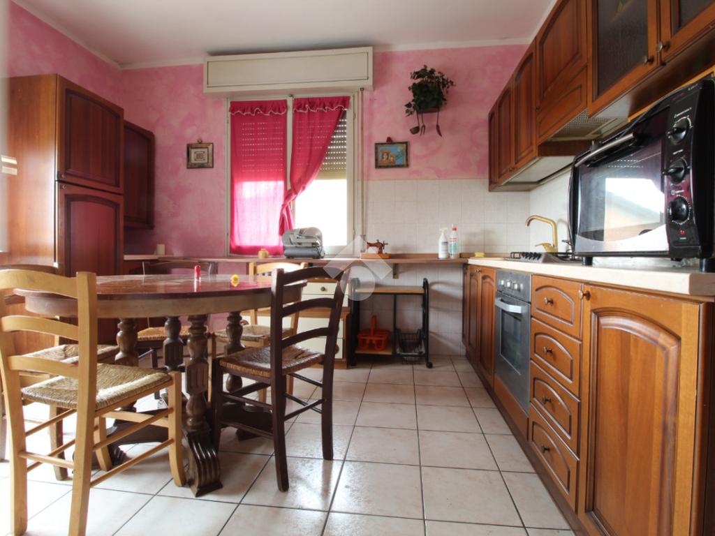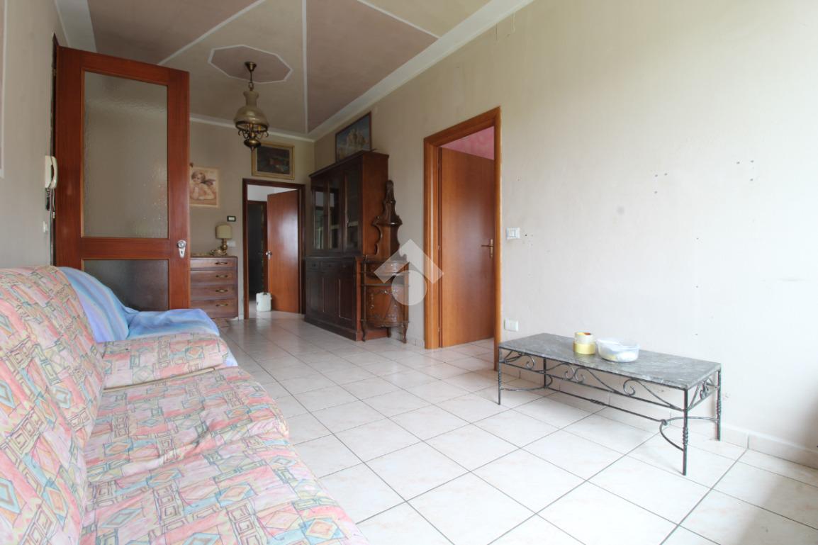 L'abitazione, al primo piano, è composta da ingresso su soggiorno, cucina abitabile, disimpegno notte, due camere matrimoniali, un bagno, un terrazzo ed un balcone.