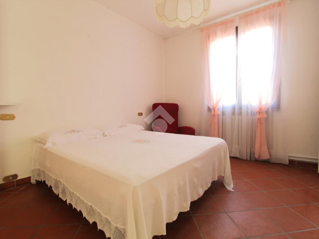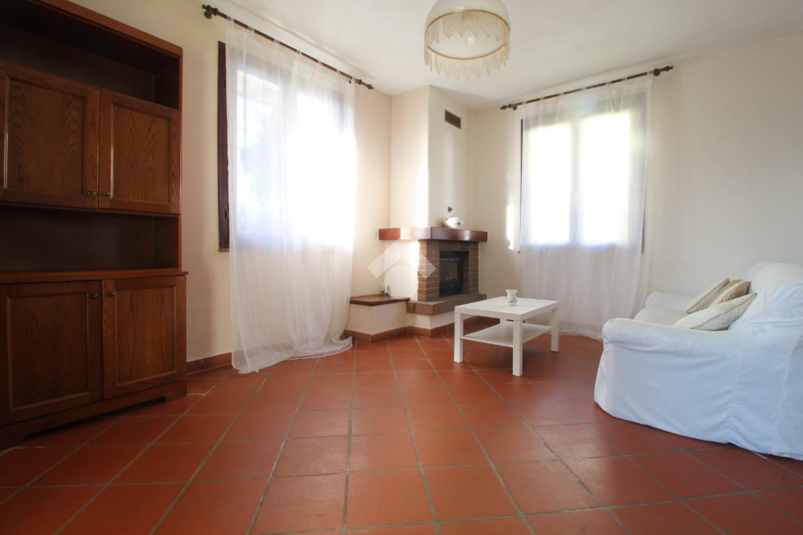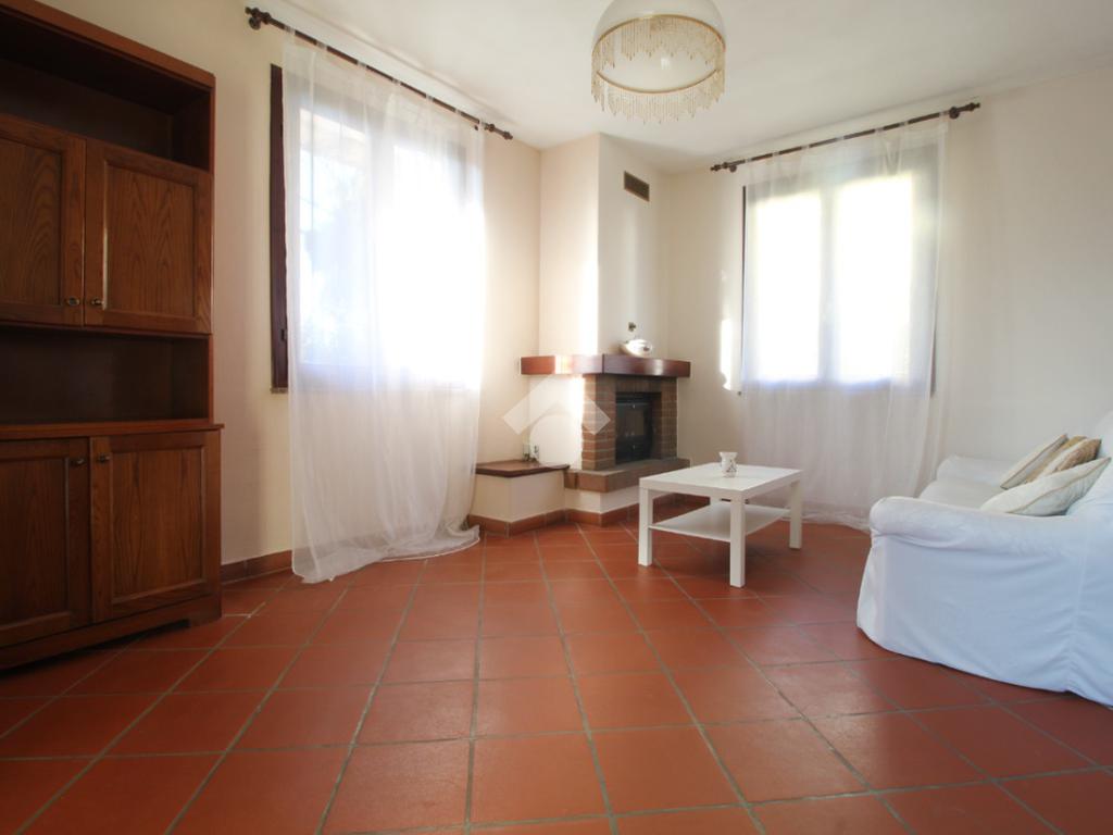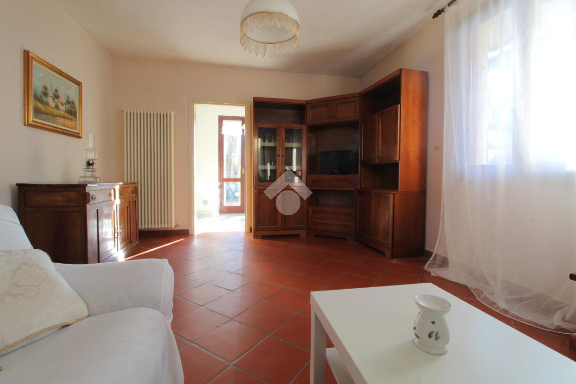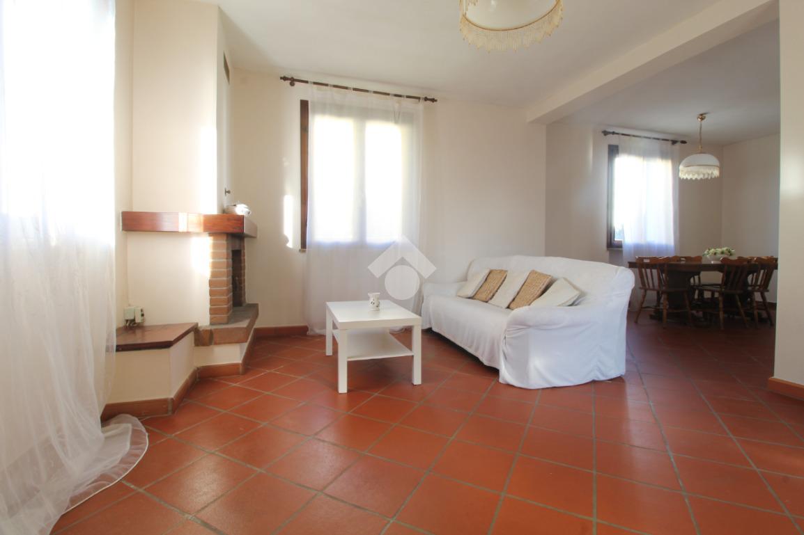 Ingresso, accogliente soggiorno con camino, cucina abitabile, ripostiglio, due camere matrimoniali di cui una con bagno privato con doccia, camera singola e spazioso bagno con vasca.
