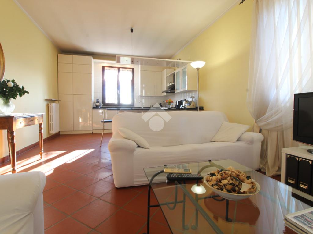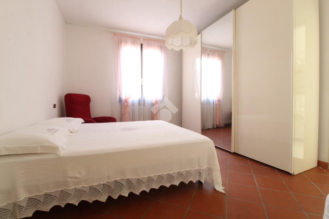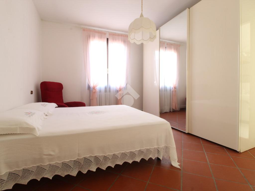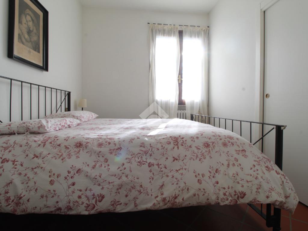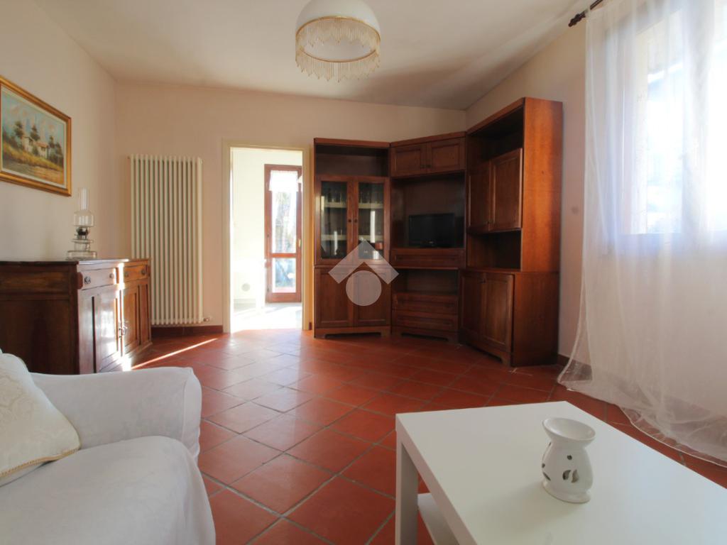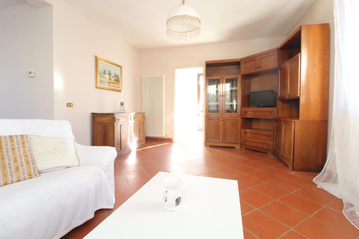 Ingresso, accogliente soggiorno con camino, cucina abitabile, ripostiglio, due camere matrimoniali di cui una con bagno privato con doccia, camera singola e spazioso bagno con vasca.