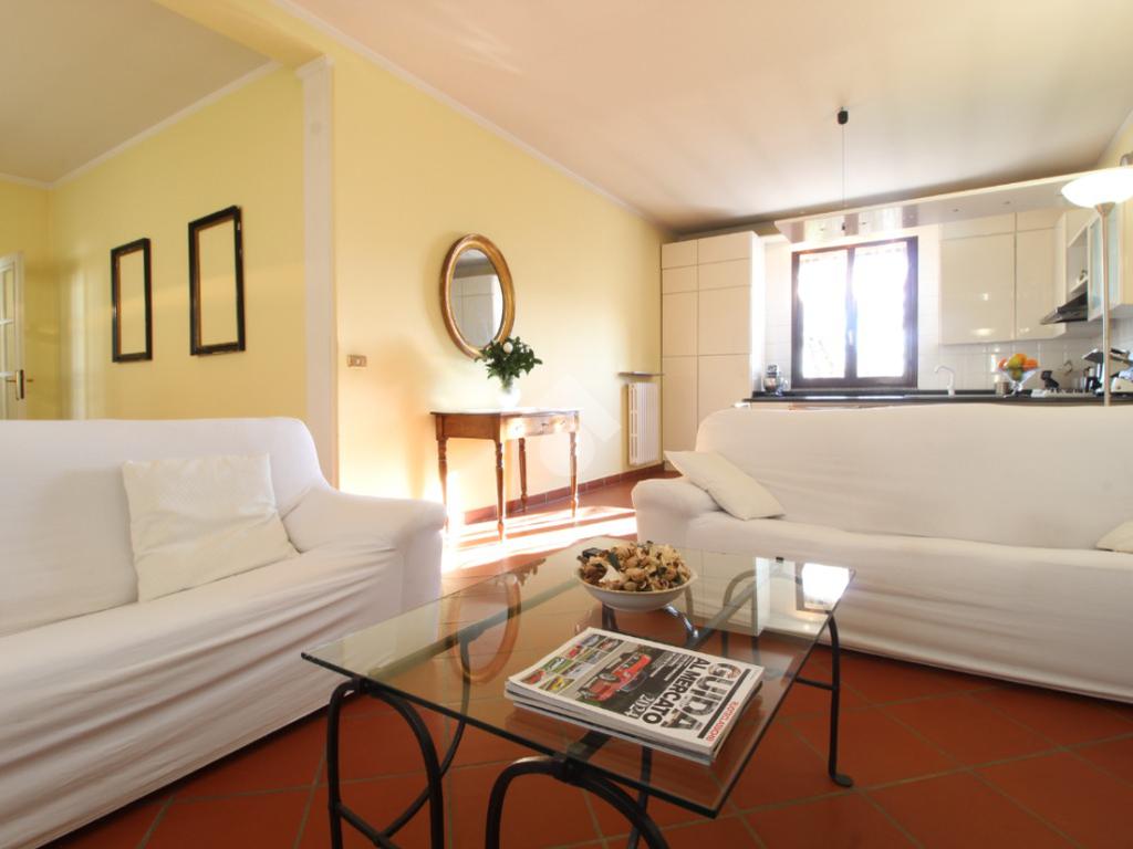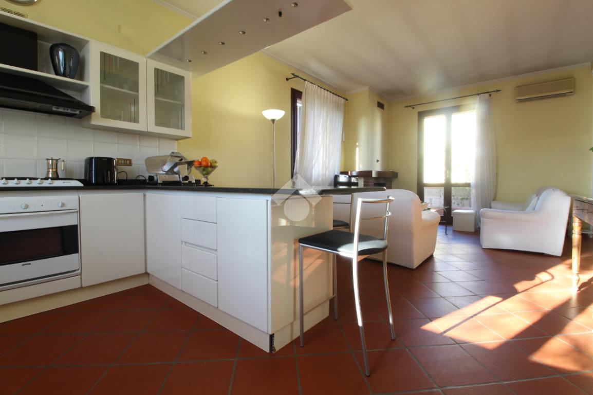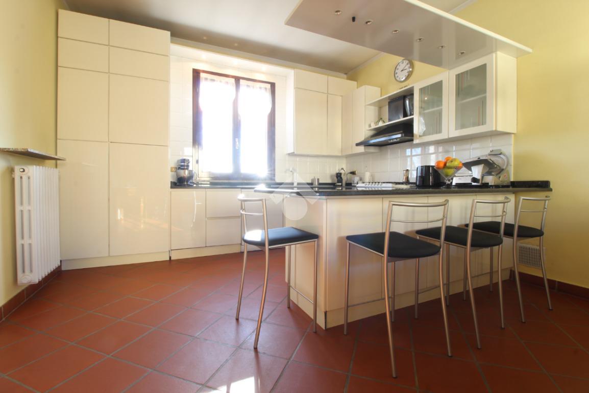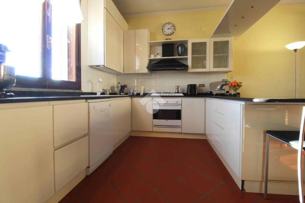 Ingresso, ampio soggiorno molto luminoso con cucina a vista e camino, camera matrimoniale con cabina armadio, camera matrimoniale con bagno privato con doccia, camera singola e ampio bagno con vasca.