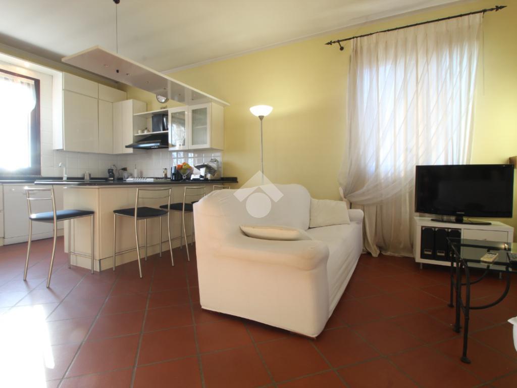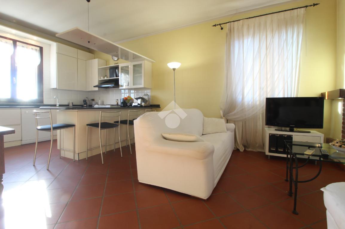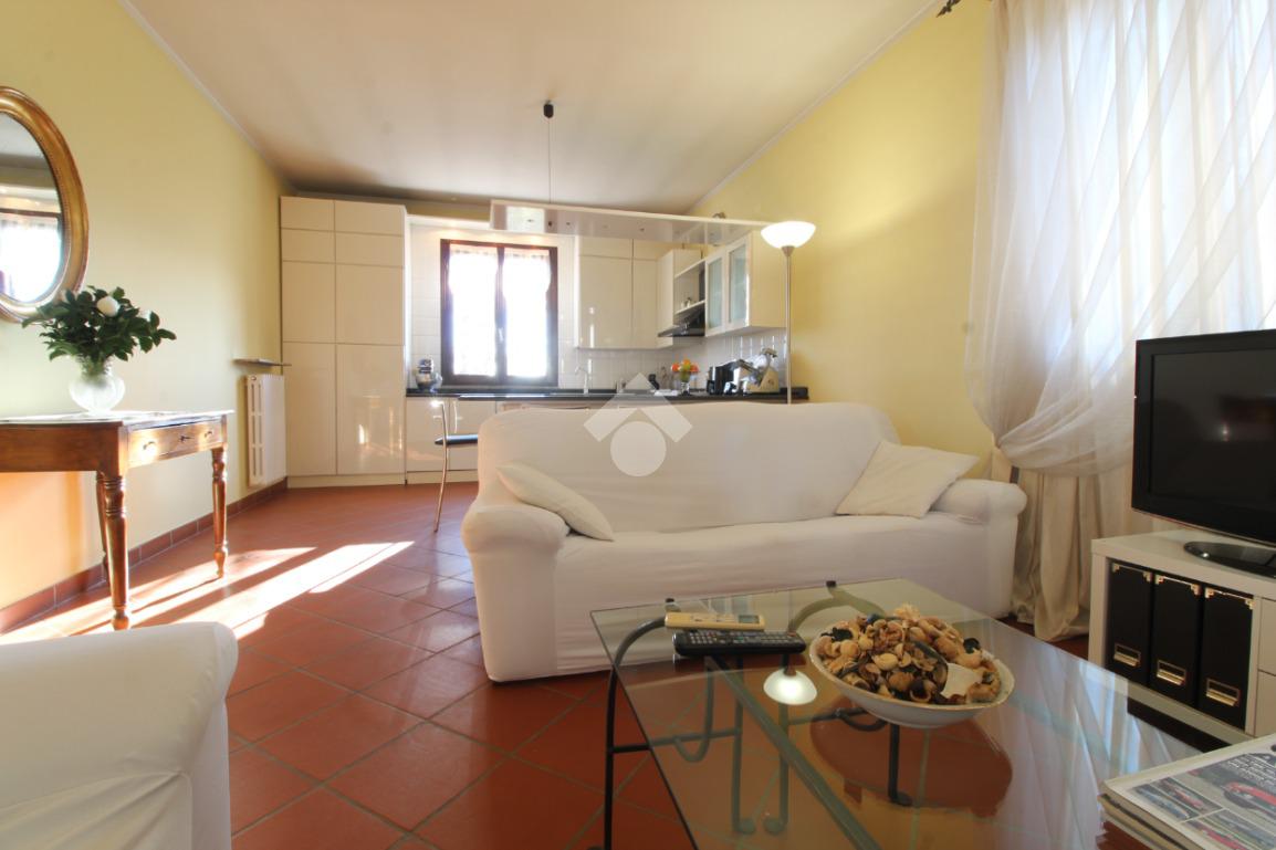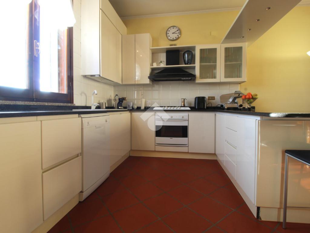 Ingresso, ampio soggiorno molto luminoso con cucina a vista e camino, camera matrimoniale con cabina armadio, camera matrimoniale con bagno privato con doccia, camera singola e ampio bagno con vasca.