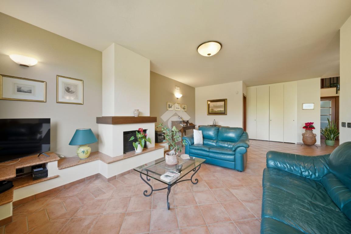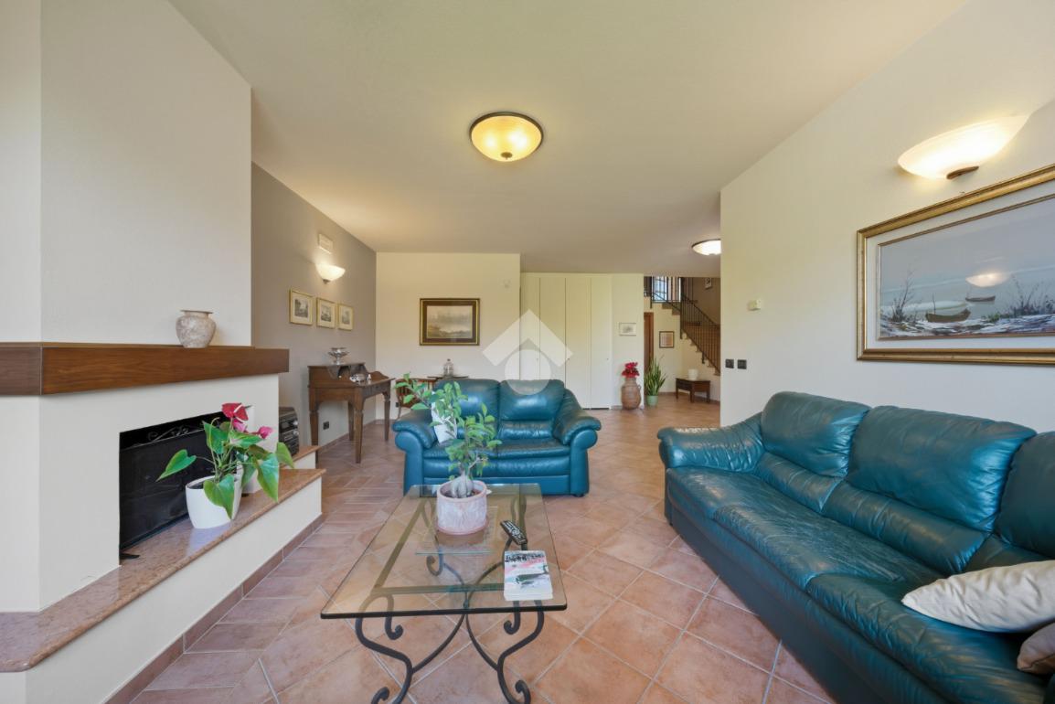 La villa si sviluppa su due piani. Al piano terra, l'abitazione principale accoglie gli ospiti in un ampio soggiorno di 50 mq dotato di camino, ideale per momenti di relax e convivialità. La cucina abitabile è perfetta per gli amanti della cucina, mentre il bagno, la lavanderia e la cantina aggiungono praticità alla quotidianità.