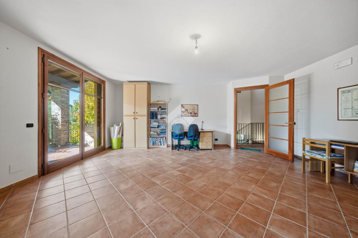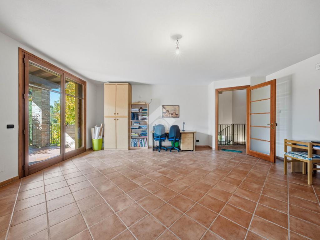 Salendo al primo piano, si apre una zona multifunzionale che può essere utilizzata come studio, perfetta per chi lavora da casa. Qui si trovano quattro camere da letto matrimoniali, due delle quali con balcone, offrendo spazi privati per ogni membro della famiglia. Due bagni completano il piano, garantendo comfort e privacy.